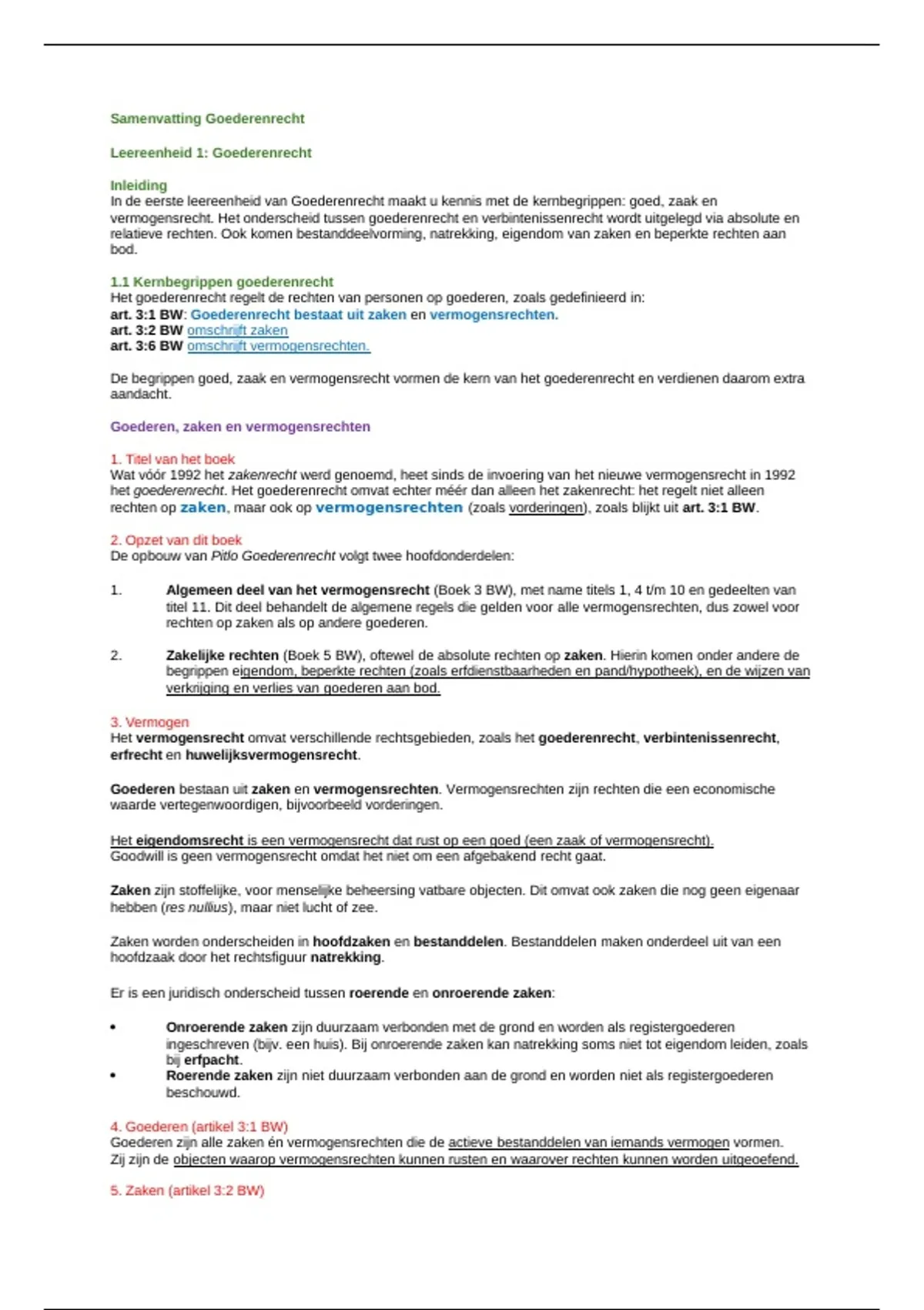 Het goederenrecht regelt de rechten van personen op goederen, zoals gedefinieerd in: