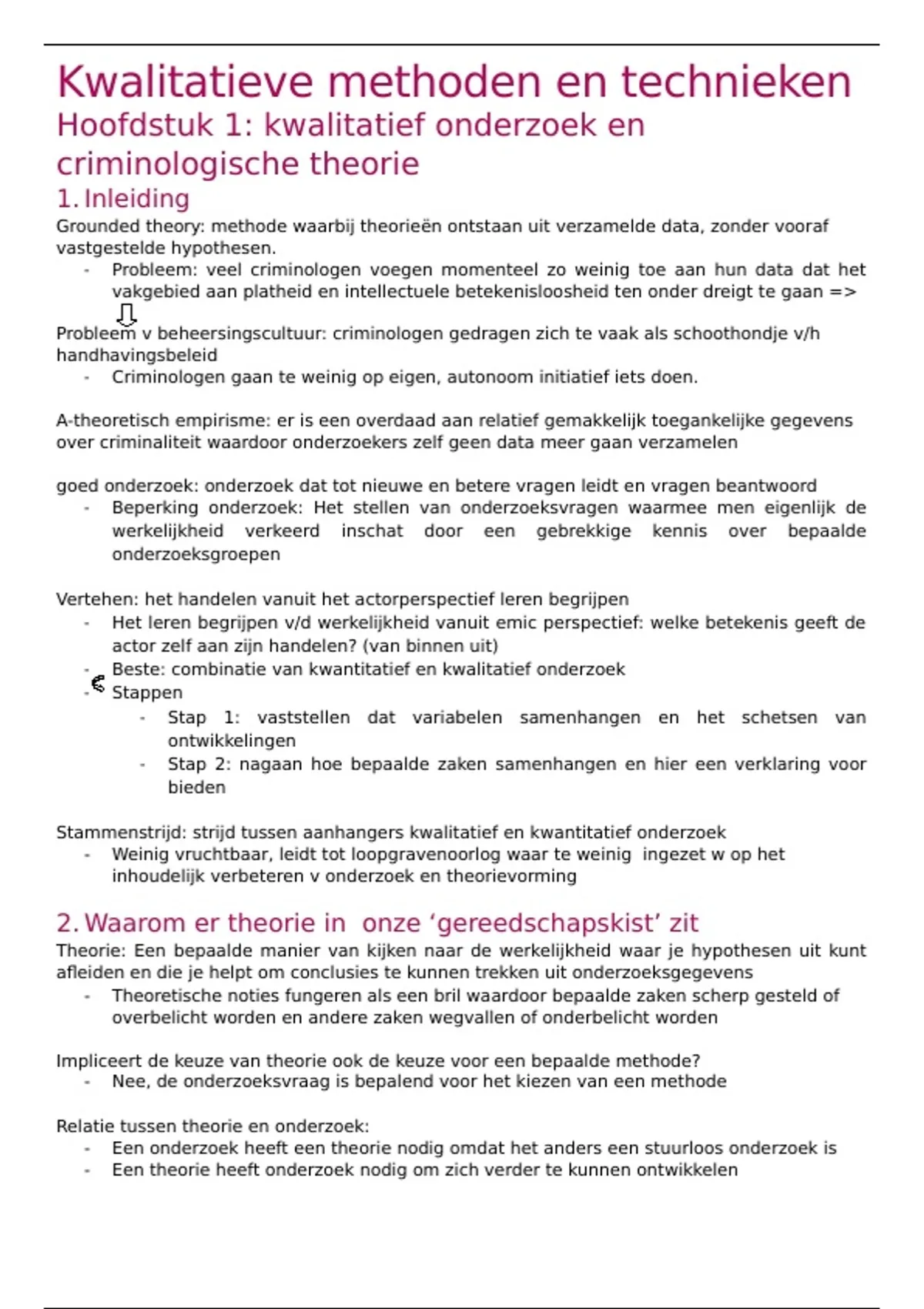 Samenvatting Kwalitatieve criminologische methoden en technieken (geslaagd 1ste zit, 14/20)