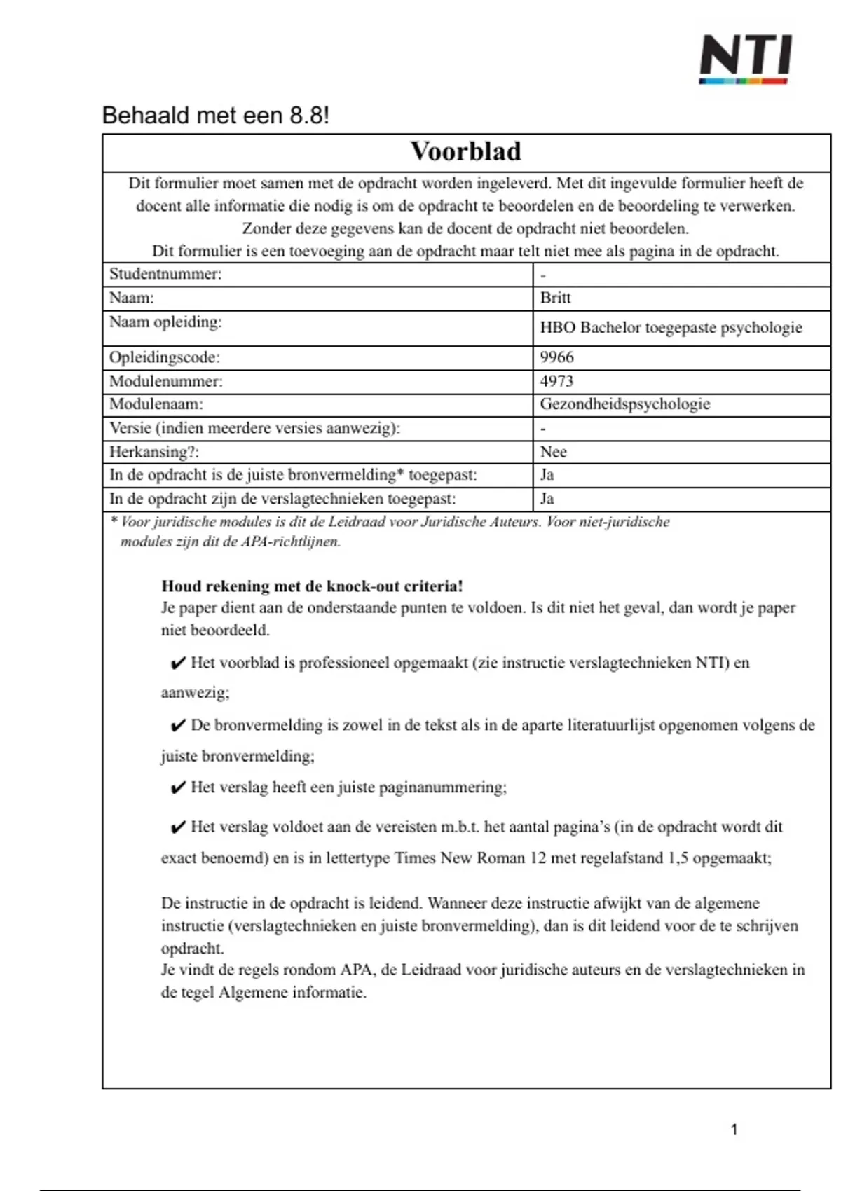 ✔Het voorblad is professioneel opgemaakt (zie instructie verslagtechnieken NTI) en