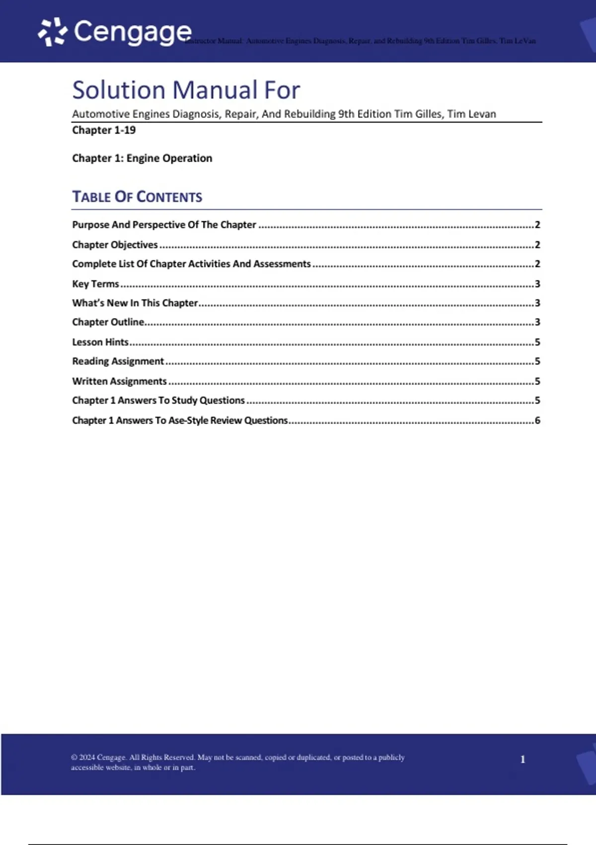 Solution manual for automotive engines diagnosis repair and rebuilding 9th edition by tim gilles tim levan chapter 1- 19.Latest 2026
