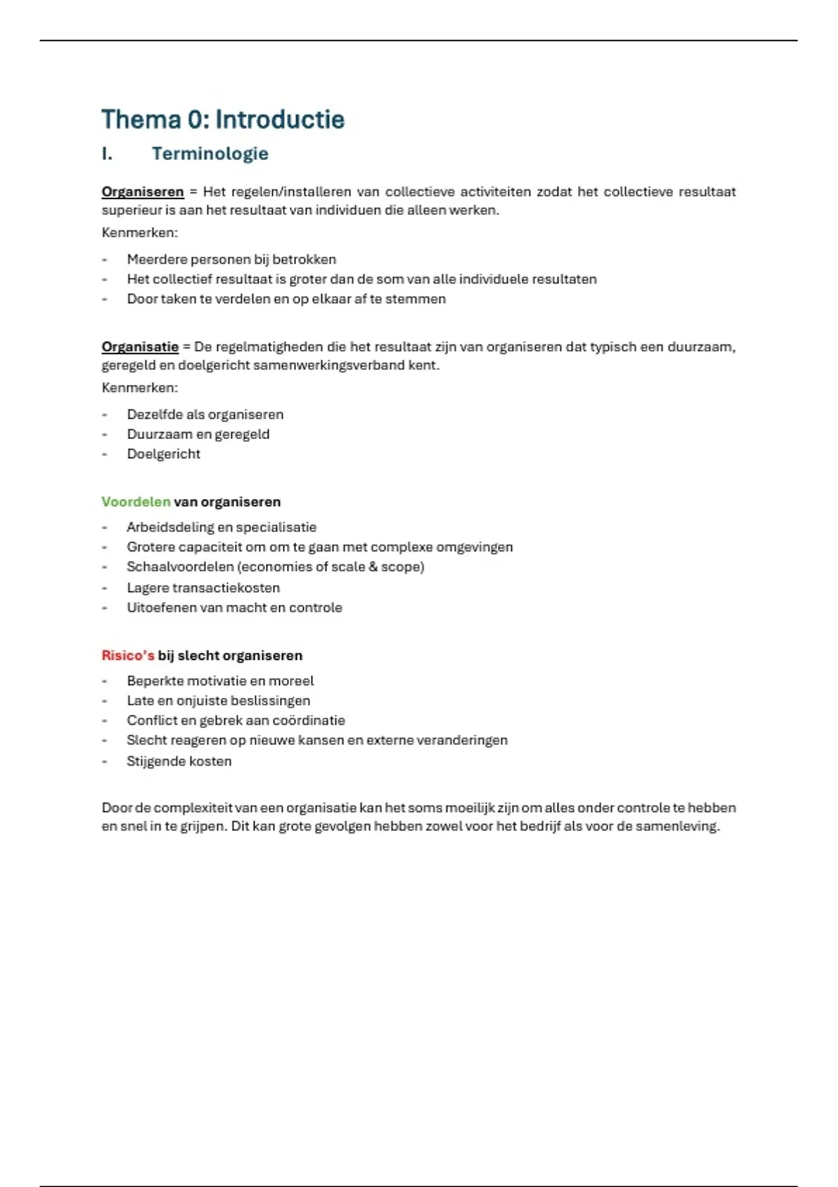 Organiseren = Het regelen/installeren van collectieve activiteiten zodat het collectieve resultaat