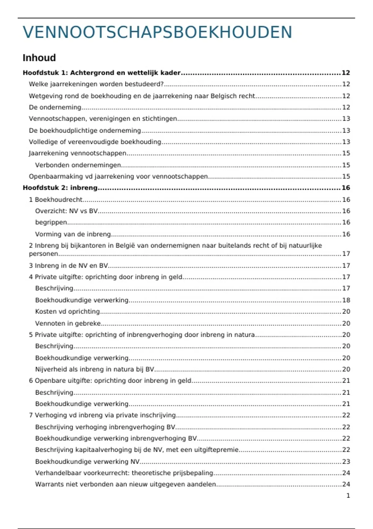 3 Inbreng in de NV en BV..................................................................................................................... 17