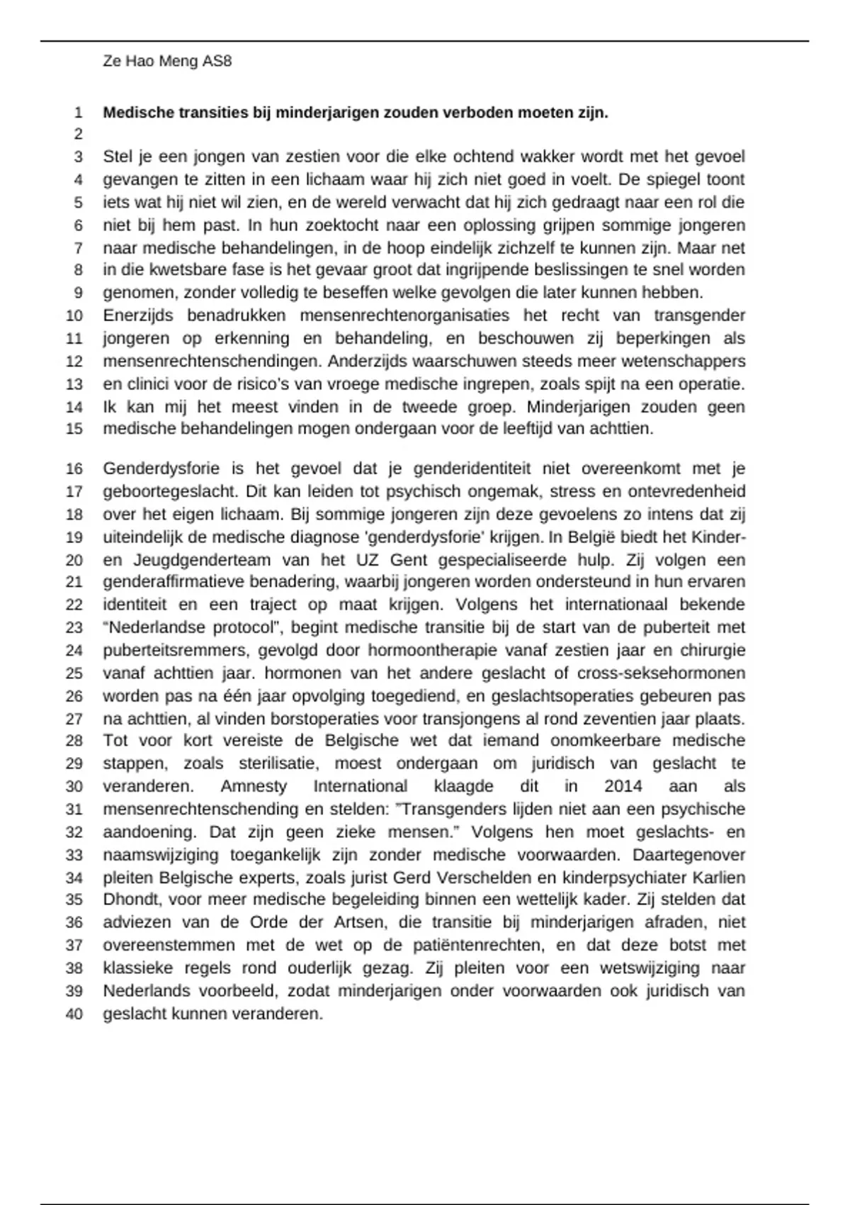 Voorbeeldbetoog voor het vak Academisch Schrijven over genderdysforie bij minderjarigen. Dit betoog behaalde een score van 70% en kan dienen als inspiratie voor de opbouw, argumentatie en schrijfstijl van je eigen betoog.
