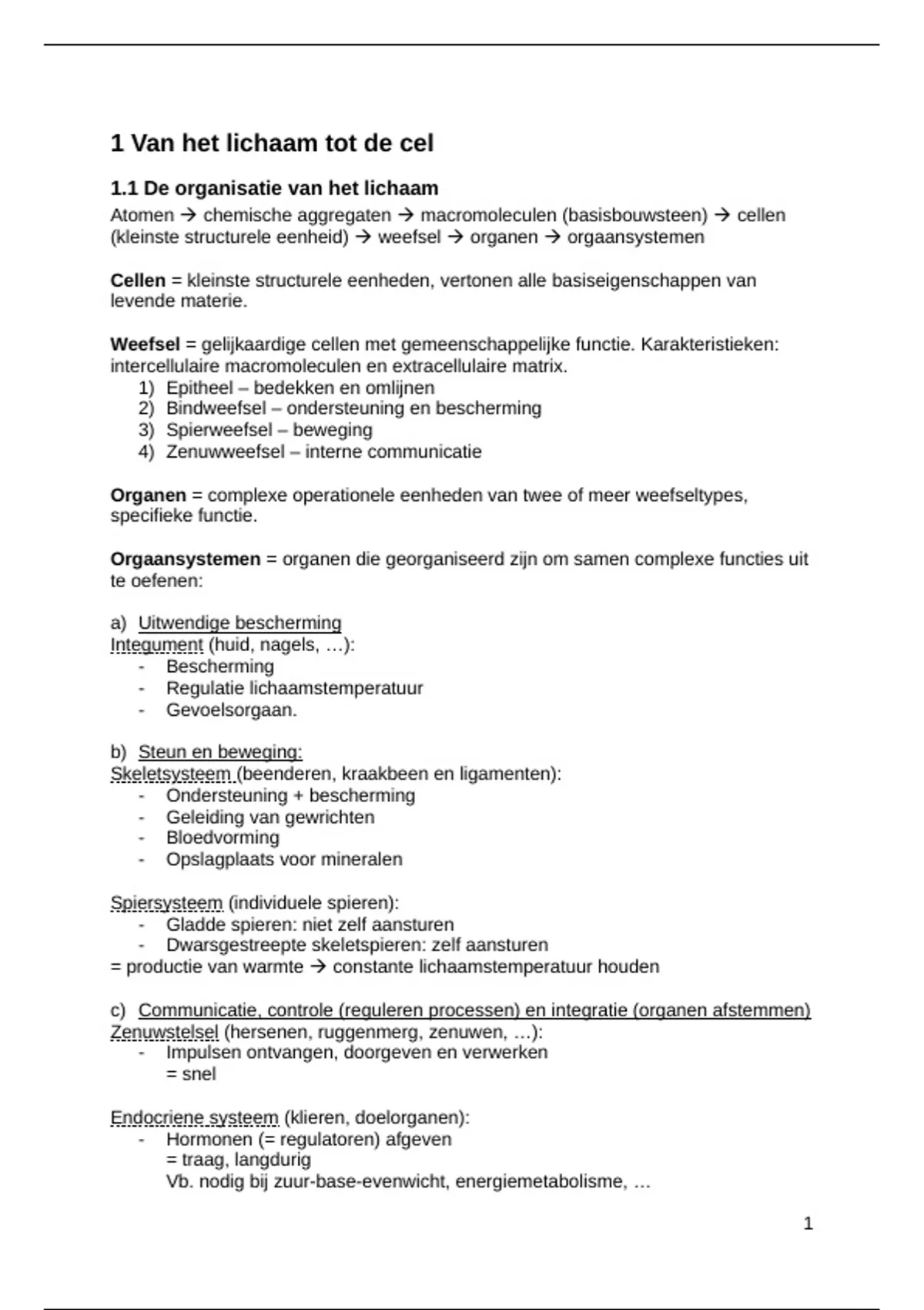 1.1 De organisatie van het lichaam