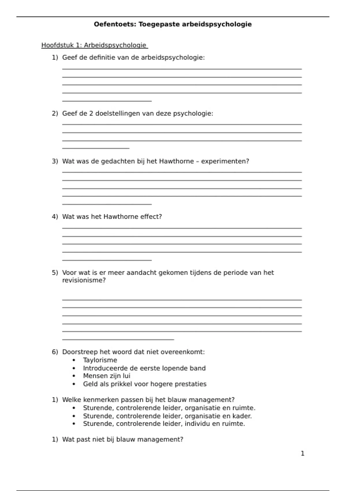 Toegepaste arbeidspsychologie - 100% slagen? Kies deze samenvatting