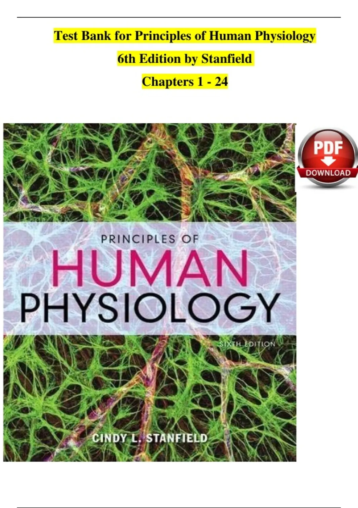 Test Bank for Principles of Human Physiology 6th Edition by Stanfield Chapters 1 - 24