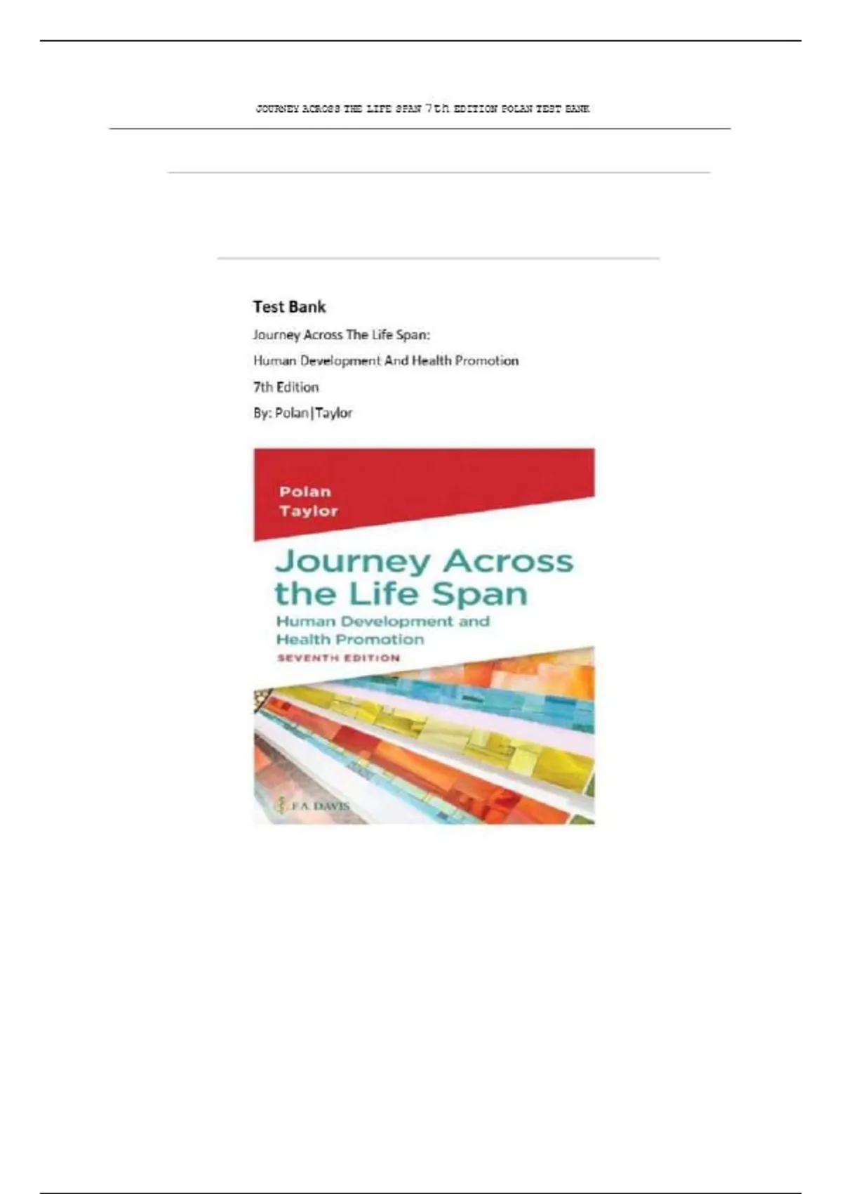 Journey Across the Life Span, 7th Edition Polan Test Bank