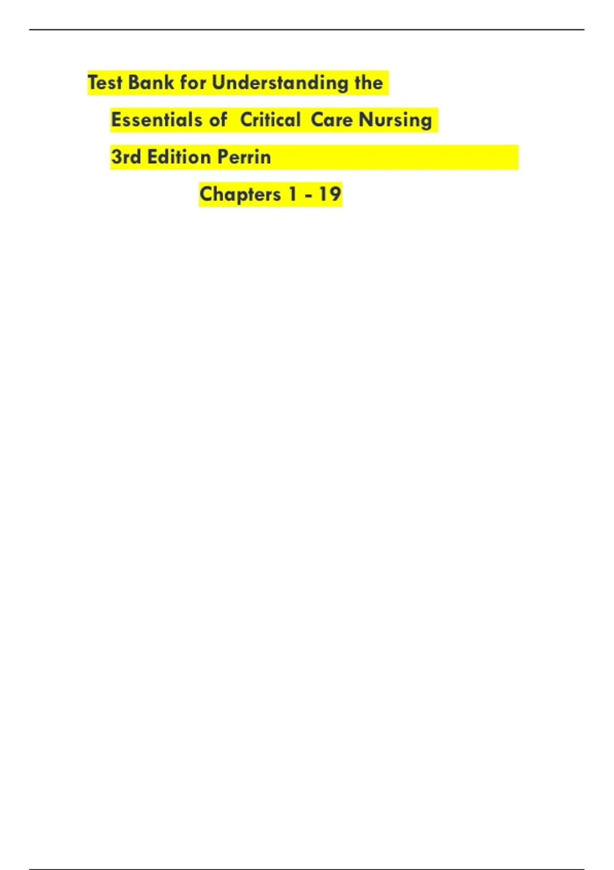 Test Bank for Understanding the Essentials of Critical Care Nursing 3rd Edition Perrin Chapters 1 - 19