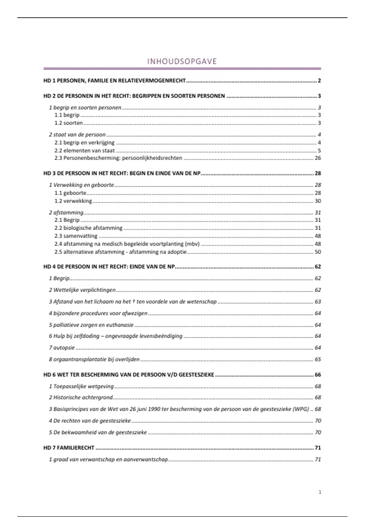 HD 1 PERSONEN, FAMILIE EN RELATIEVERMOGENRECHT ................................................................................. 2
