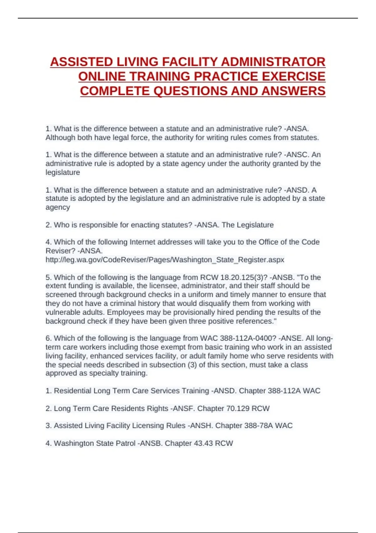 1. Residential Long Term Care Services Training -ANSD. Chapter 388-112A WAC