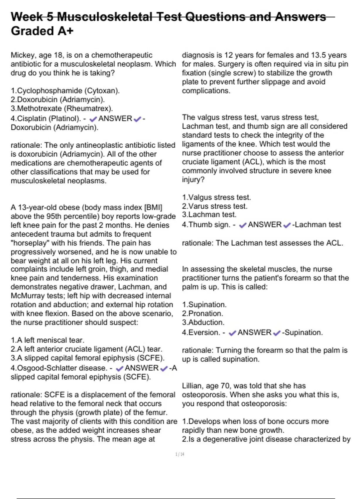 , Week 5 Musculoskeletal Test Questions and Answers