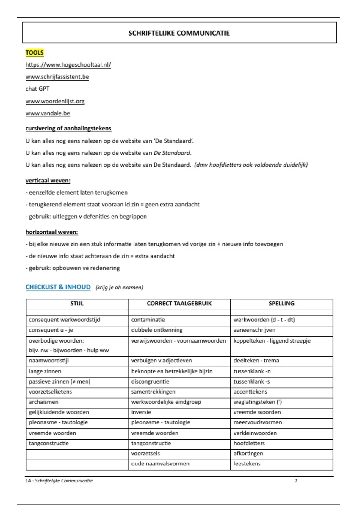 Samenvatting examen Schriftelijke Communicatie - mogelijke examenvragen