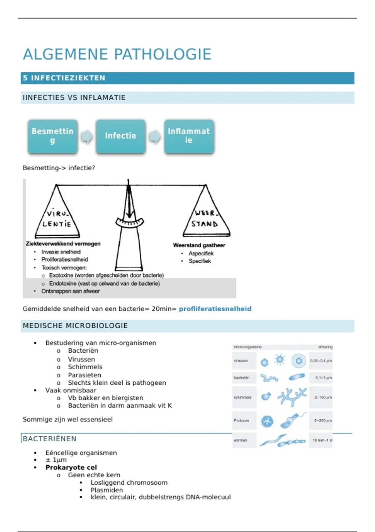Dit is een samenvatting van het vak algemene pathologie. Deze samenvatting bevat Hf 5: infectiologie. De lessen zijn gegeven in .