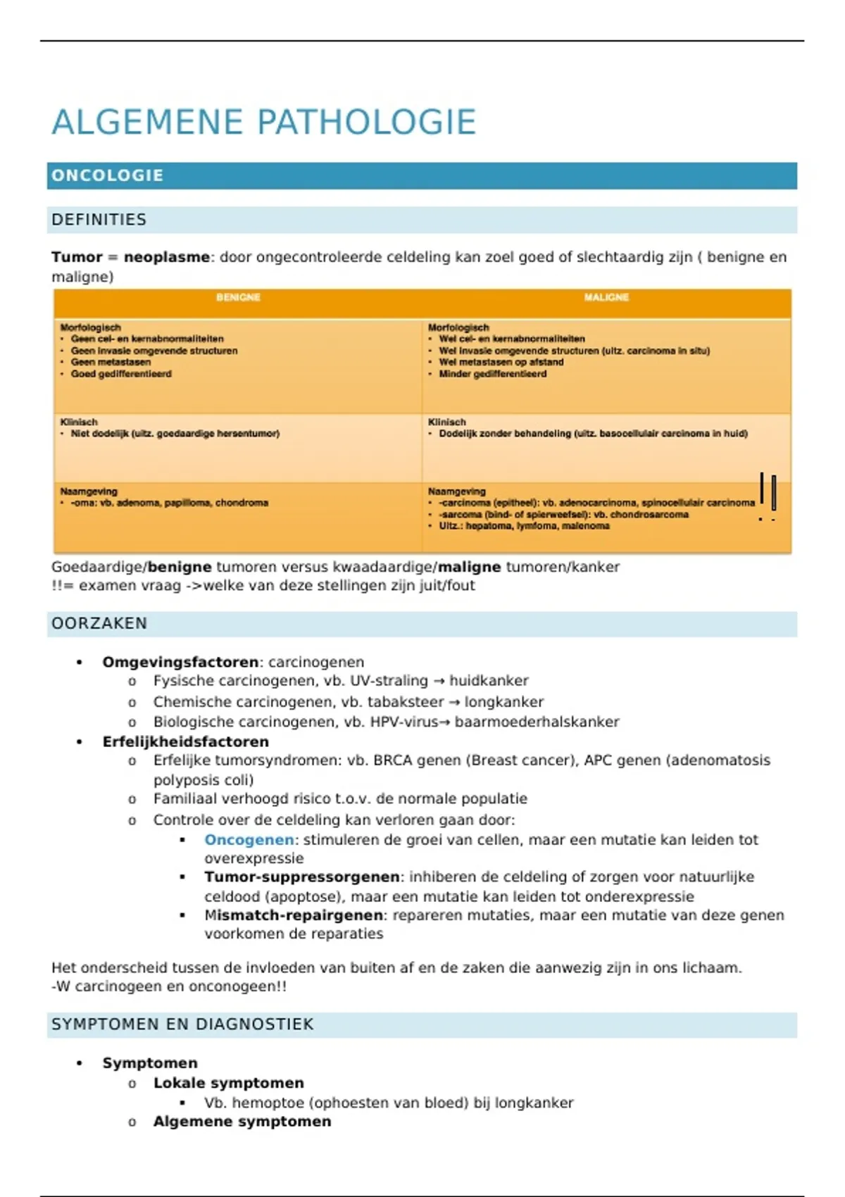 Tumor = neoplasme: door ongecontroleerde celdeling kan zoel goed of slechtaardig zijn ( benigne en