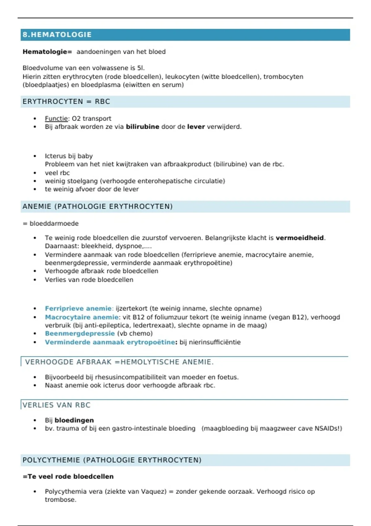 Hematologie= aandoeningen van het bloed
