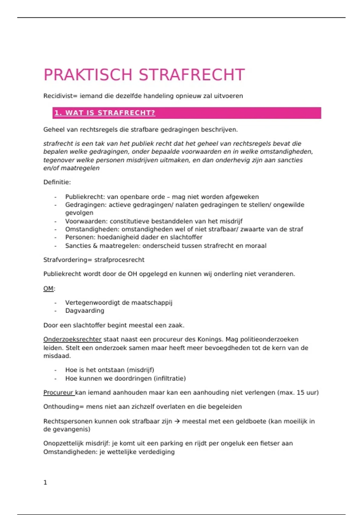 Samenvatting van 50 pagina's voor het vak Strafrecht aan de VIVES