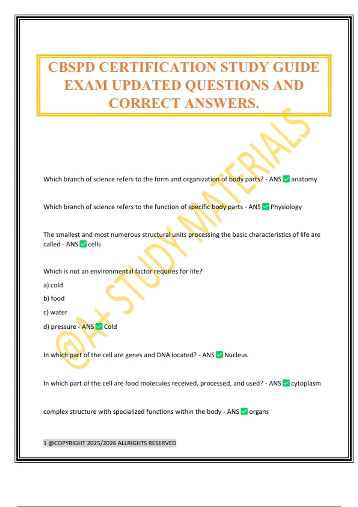 CBSPD CERTIFICATION STUDY GUIDE EXAM UPDATED QUESTIONS AND CORRECT ANSWERS.