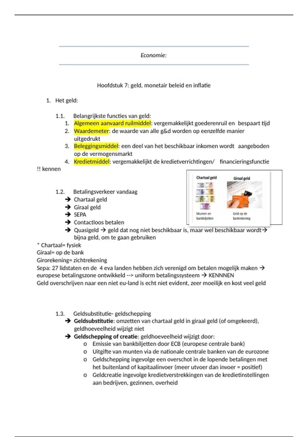 1. Het geld: