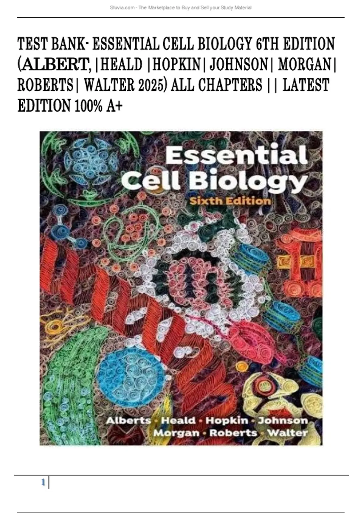 Test Bank- Essential Cell Biology 6th Edition (Albert,|Heald |Hopkin| Johnson| Morgan| Roberts| Walter 2025) All Chapters || Latest Edition 100% A+