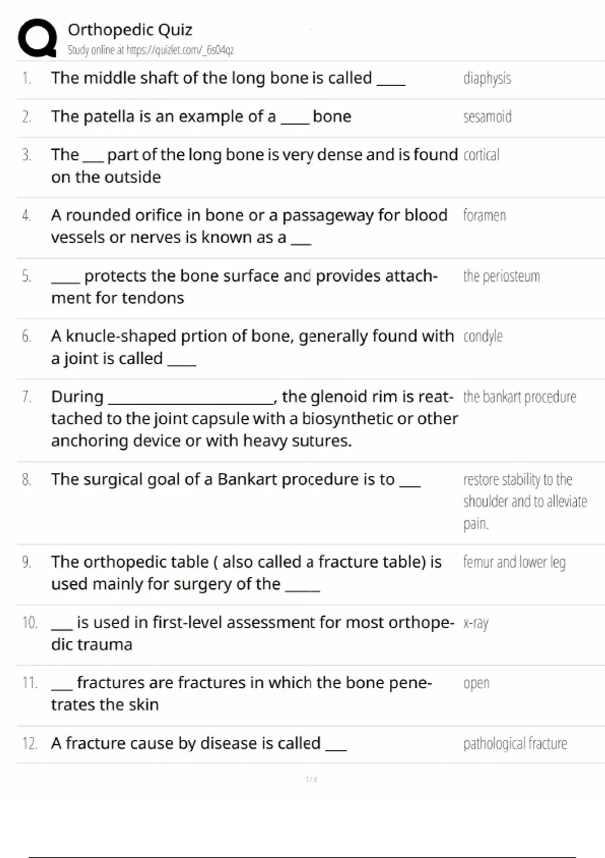 Orthopedic Quiz / Score 100% / 2025 Update / Nursing & Medical Exam Study Guide