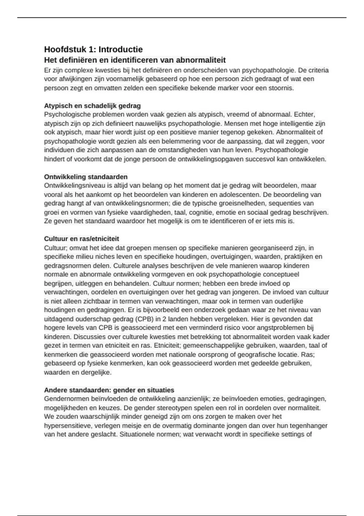 Document met alle literatuur samengevat voor het vak ontwikkelingspsychopathologie aan de universiteit Leiden. Zelf een 8.6 behaald voor het vak.