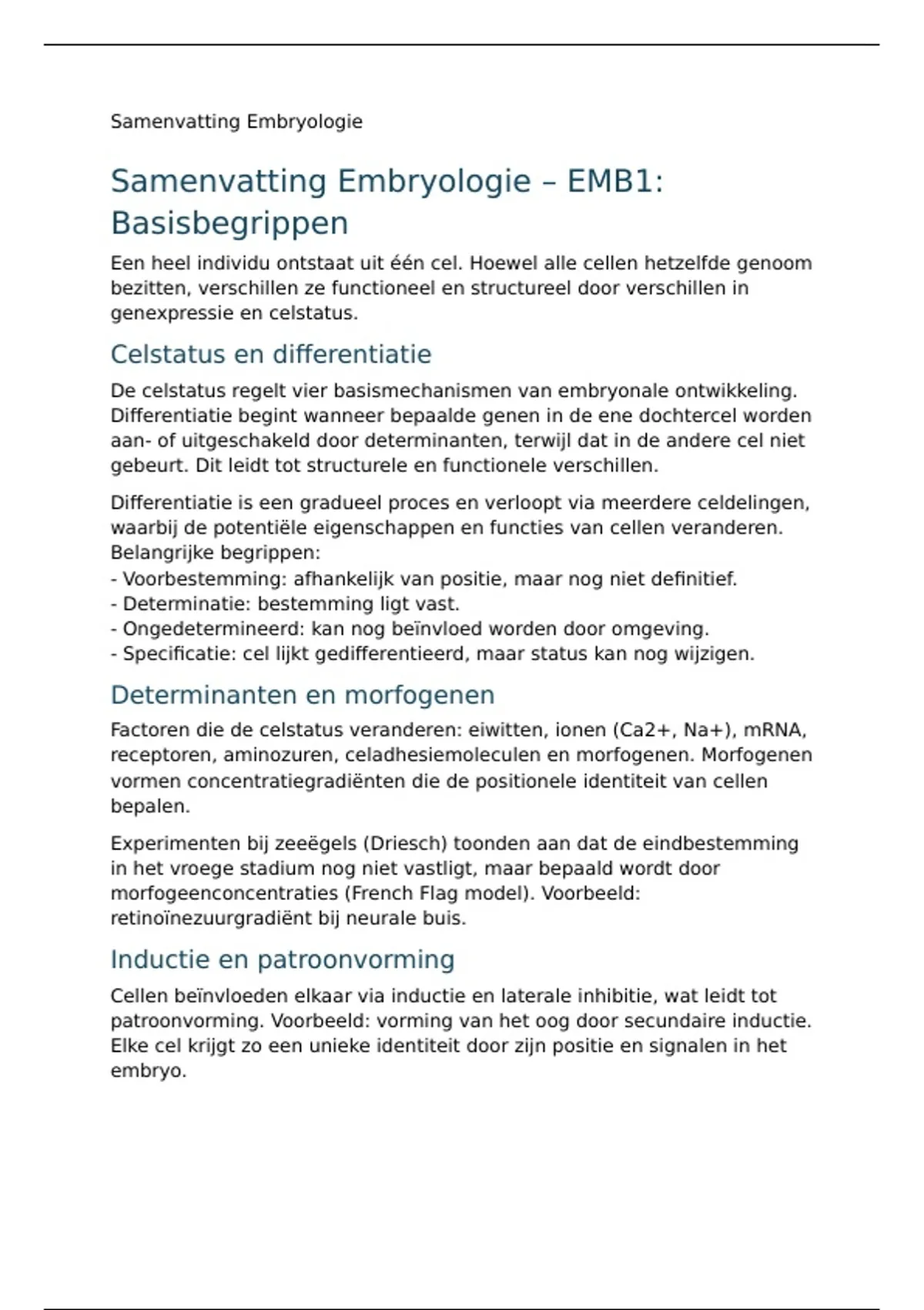 Samenvatting Embryologie – EMB1: