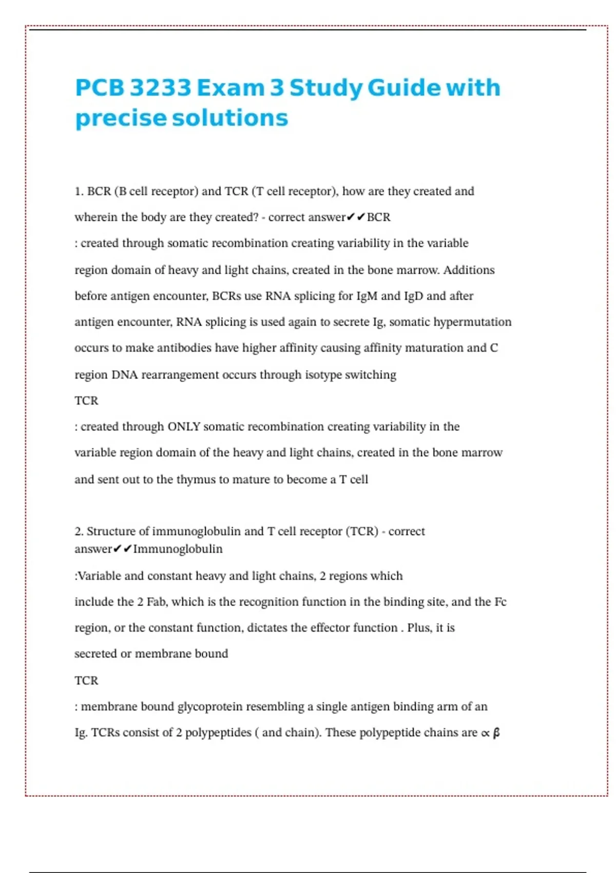 2. Structure of immunoglobulin and T cell receptor (TCR) - correct