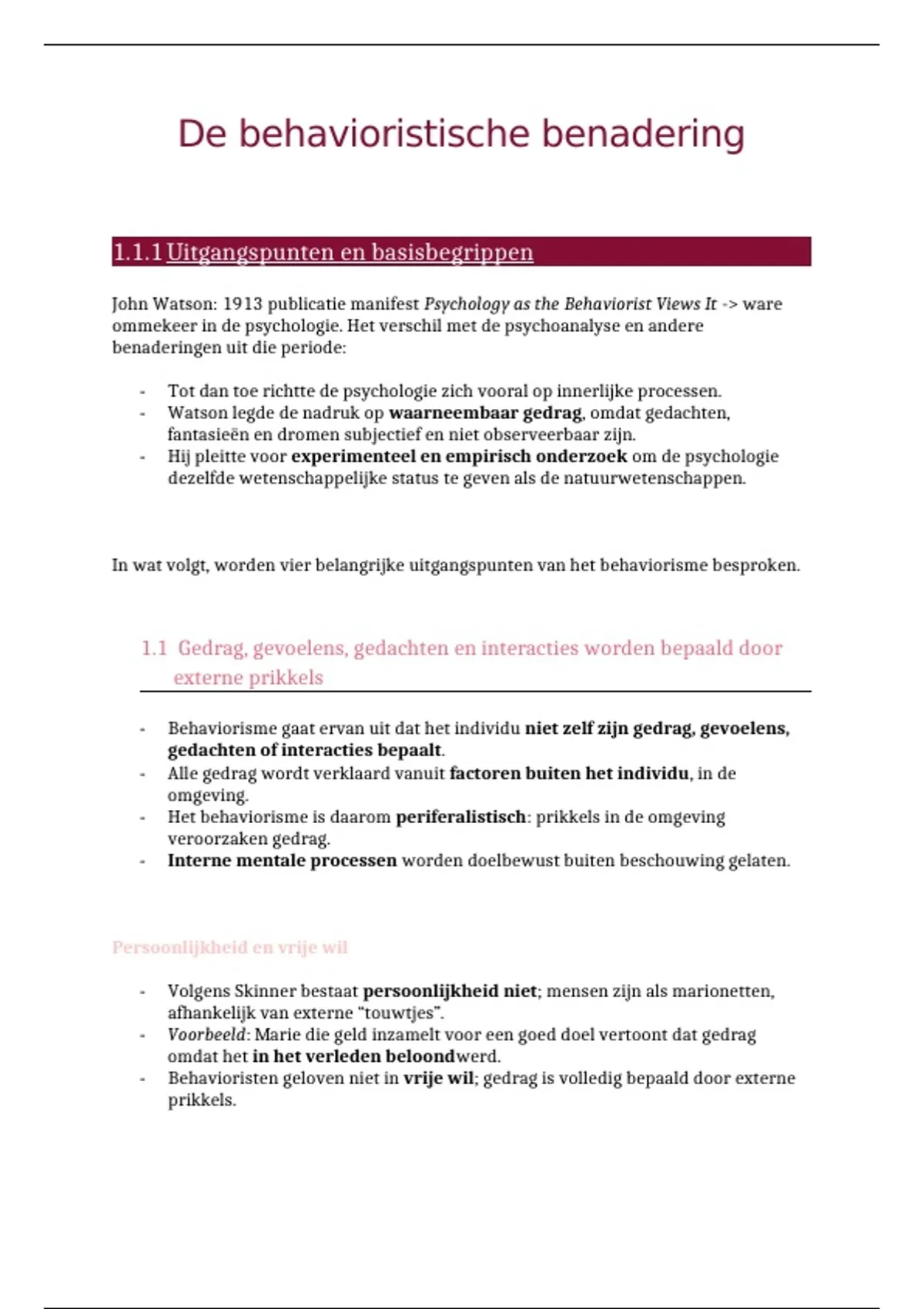 , 1.3 Een behavioristische benadering gaat uit van het nurture-model