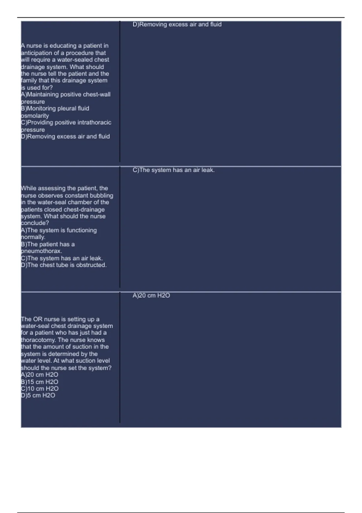 thoracotomy. The nurse knows