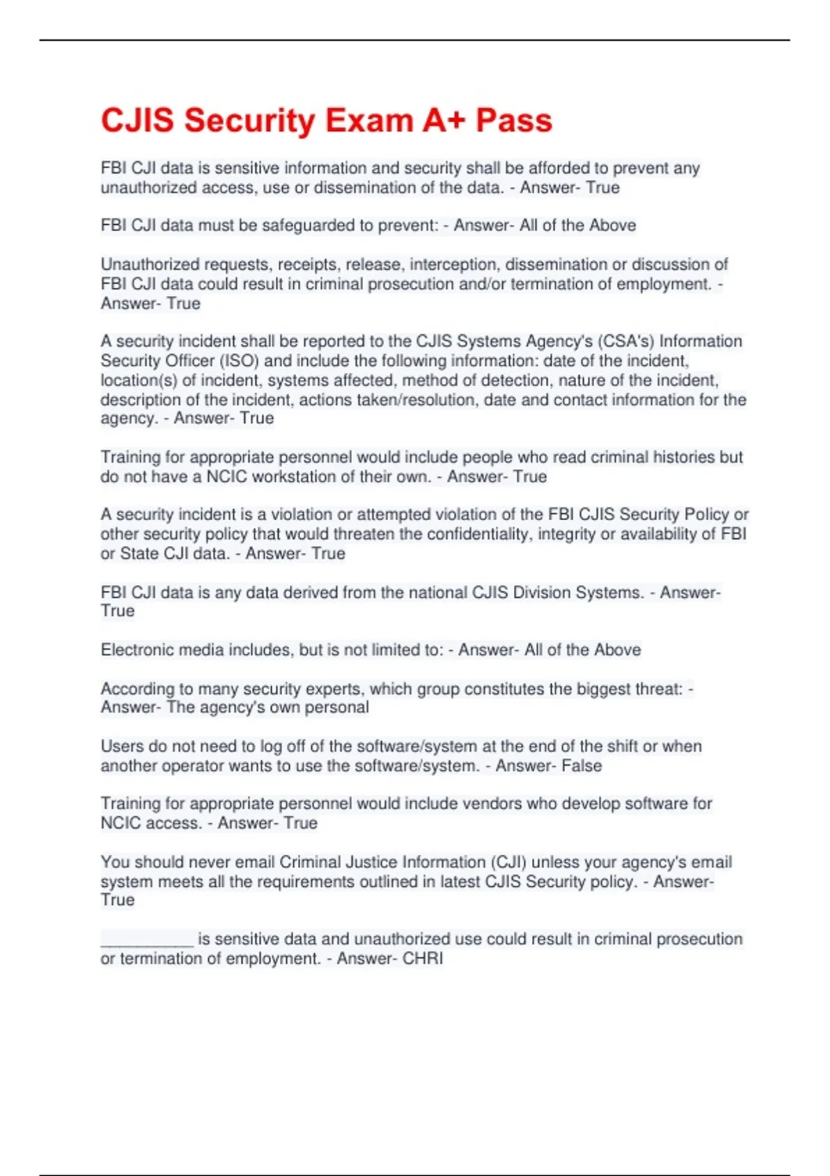 CJIS Security Exam A+ Pass