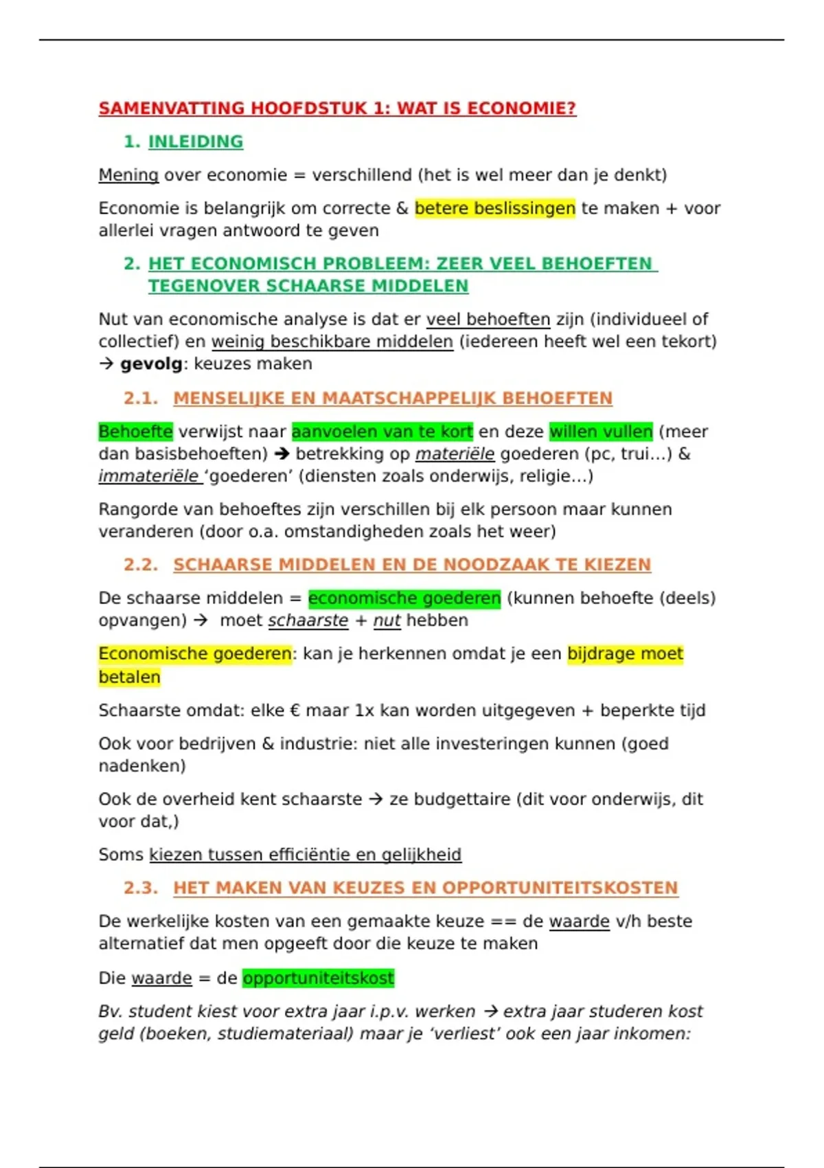 SAMENVATTING HOOFDSTUK 1: WAT IS ECONOMIE?