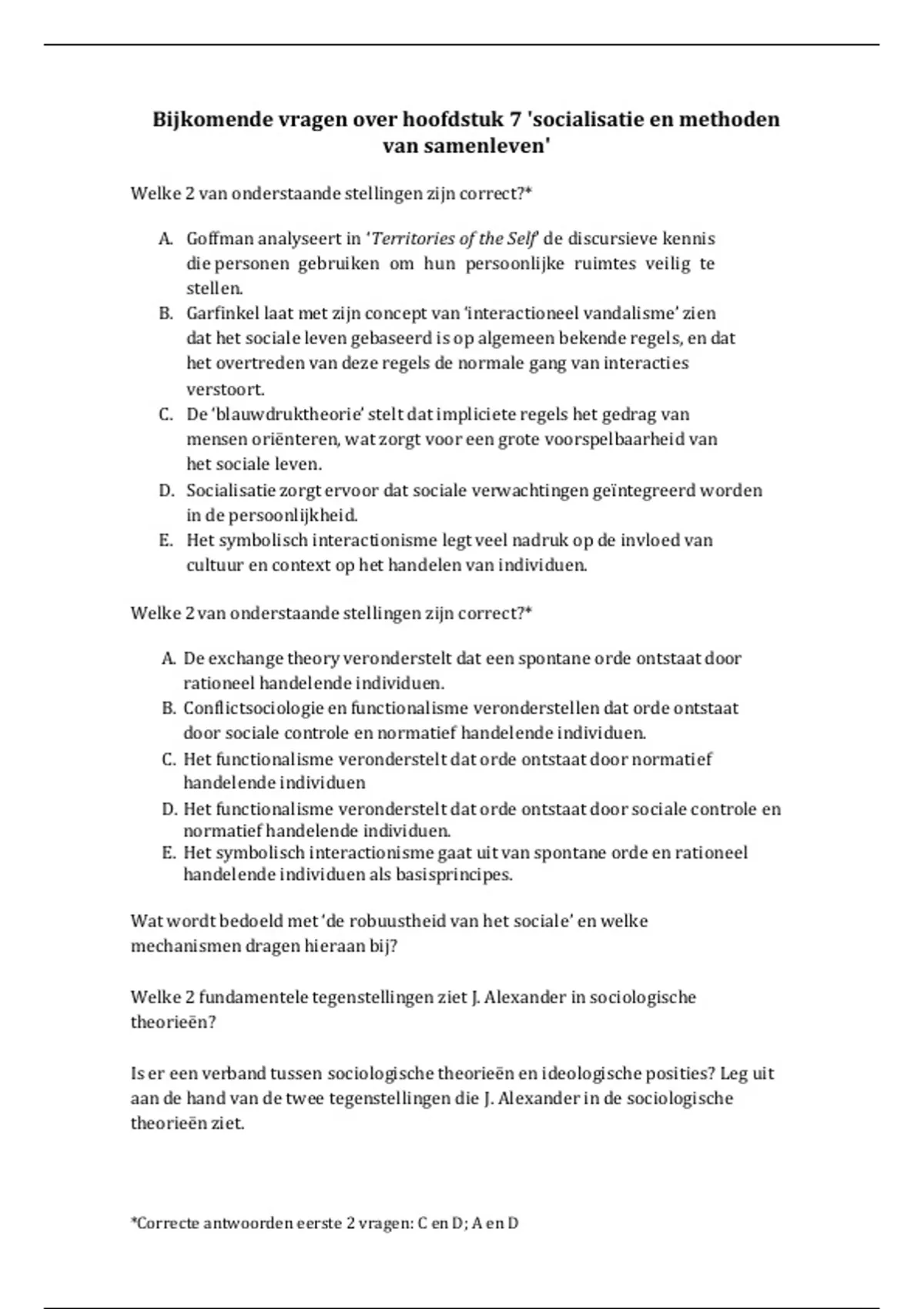 ZELFSTUDIE HOOFDSTUK 7 SOCIOLOGIE TEST
