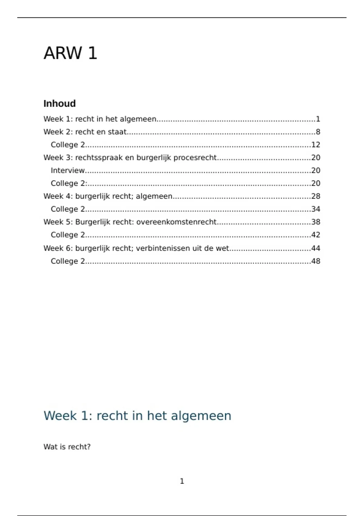 Week 1: recht in het algemeen....................................................................1