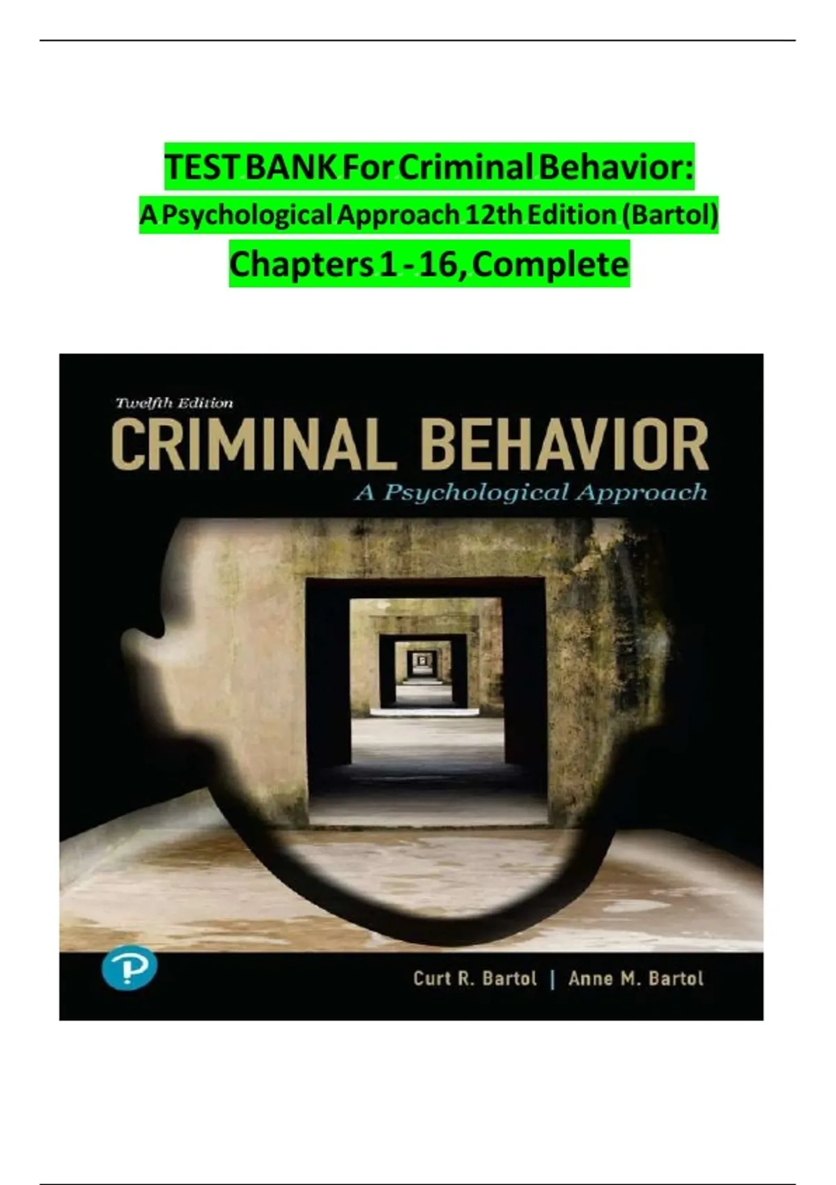 TEST BANK FOR CRIMINAL BEHAVIOR:A PSYCHOLOGICAL APPROACH 12TH EDITION (BARTOL)CHAPTERS 1 - 16, 100% COMPLETE SOLUTION Q&A 2025/2026