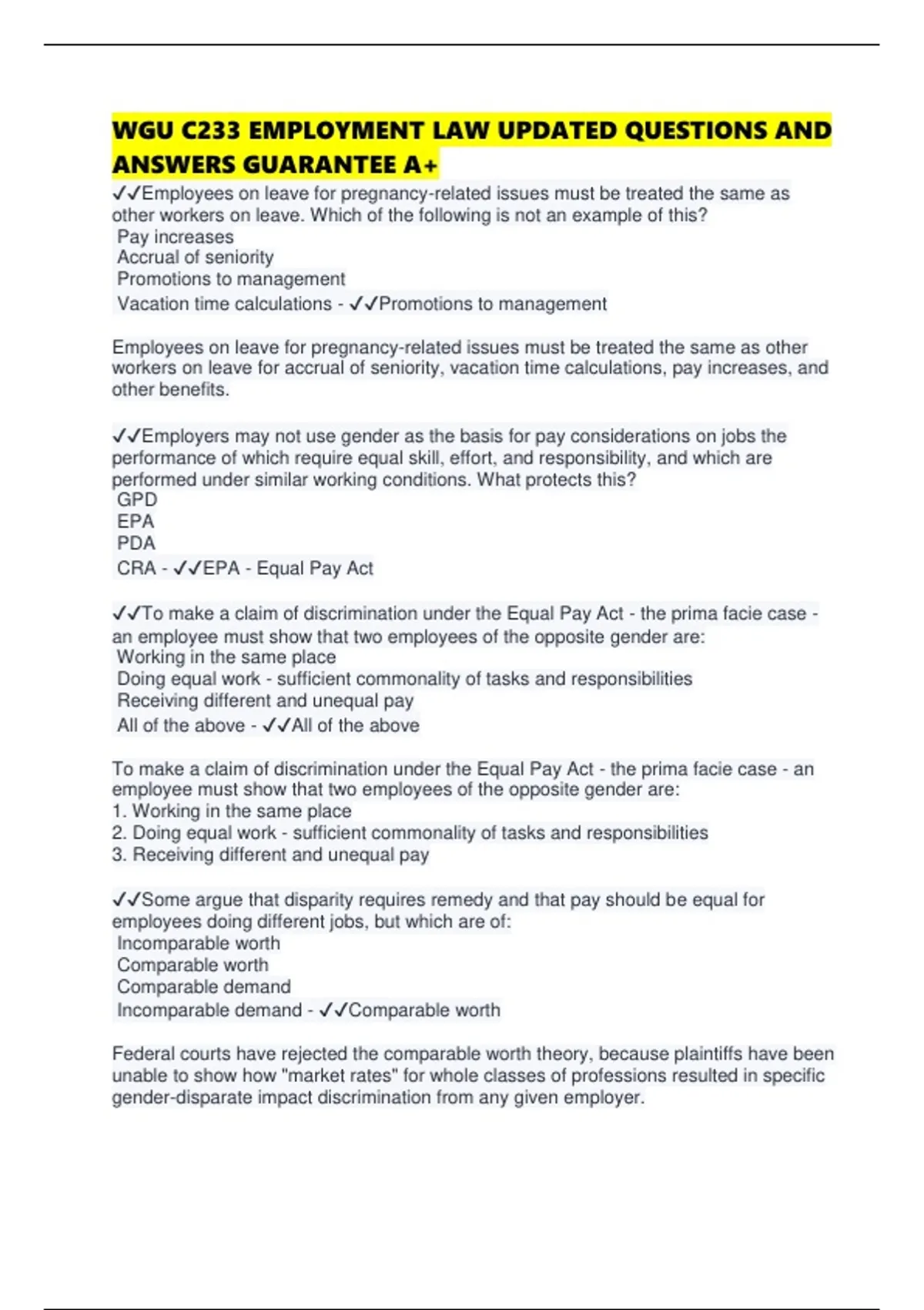 ✔✔To make a claim of discrimination under the Equal Pay Act - the prima facie case -