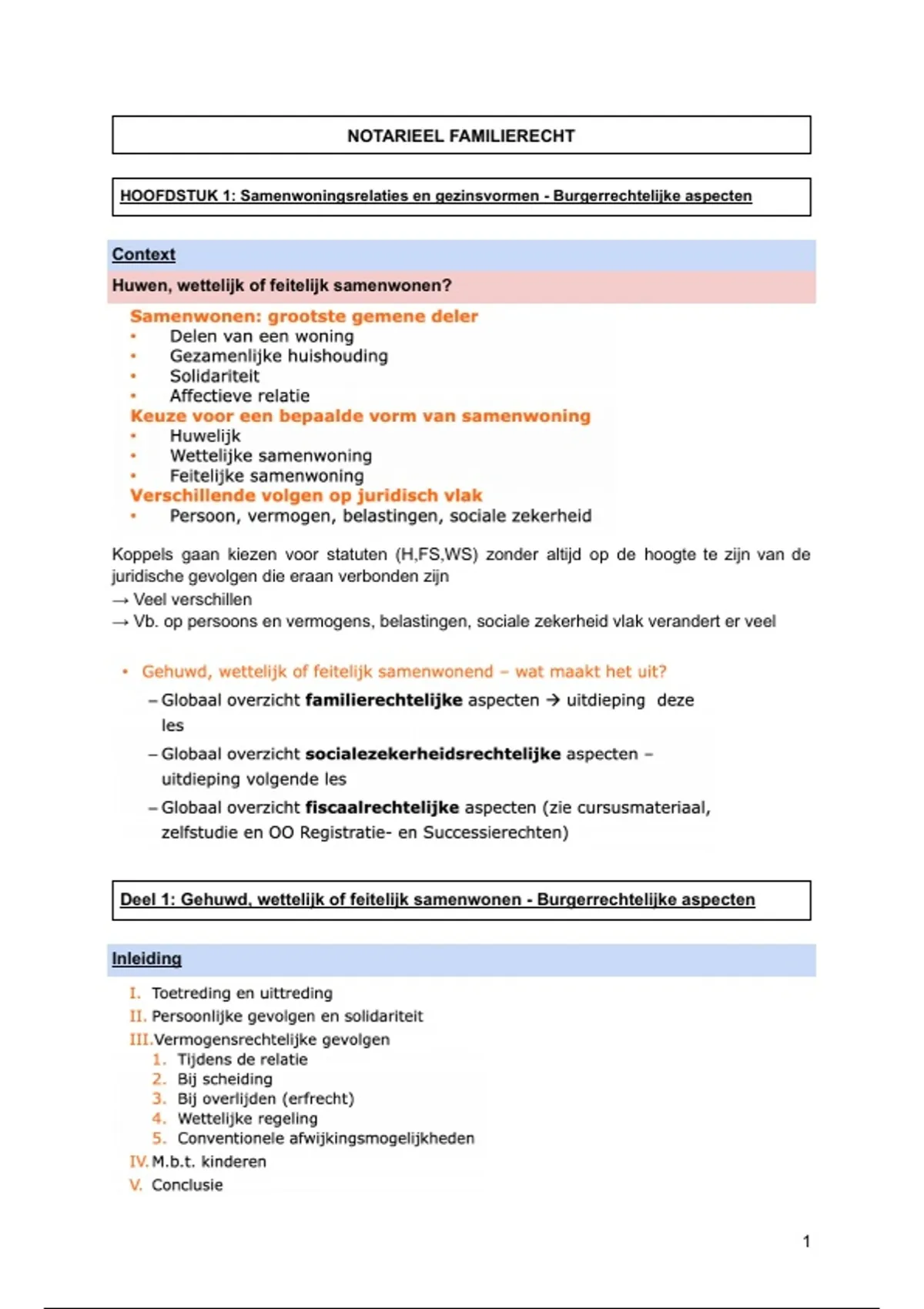 HOOFDSTUK 1: Samenwoningsrelaties en gezinsvormen - Burgerrechtelijke aspecten
