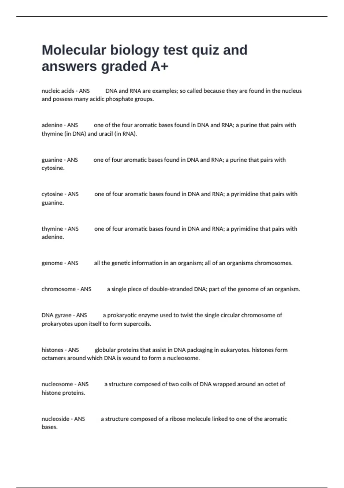 Molecular biology test quiz and answers graded A+-