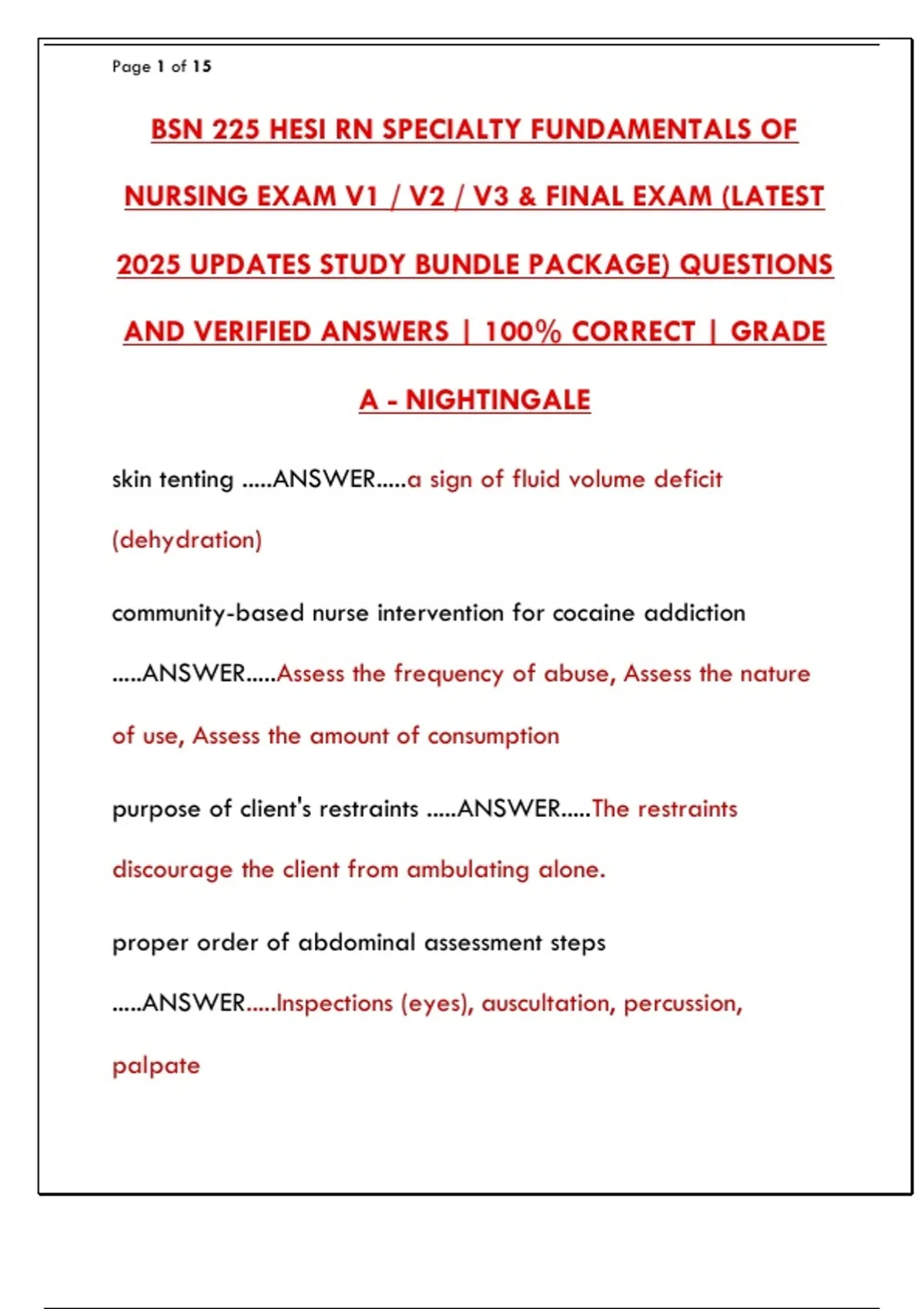 NURSING EXAM V1 / V2 / V3 & FINAL EXAM (LATEST