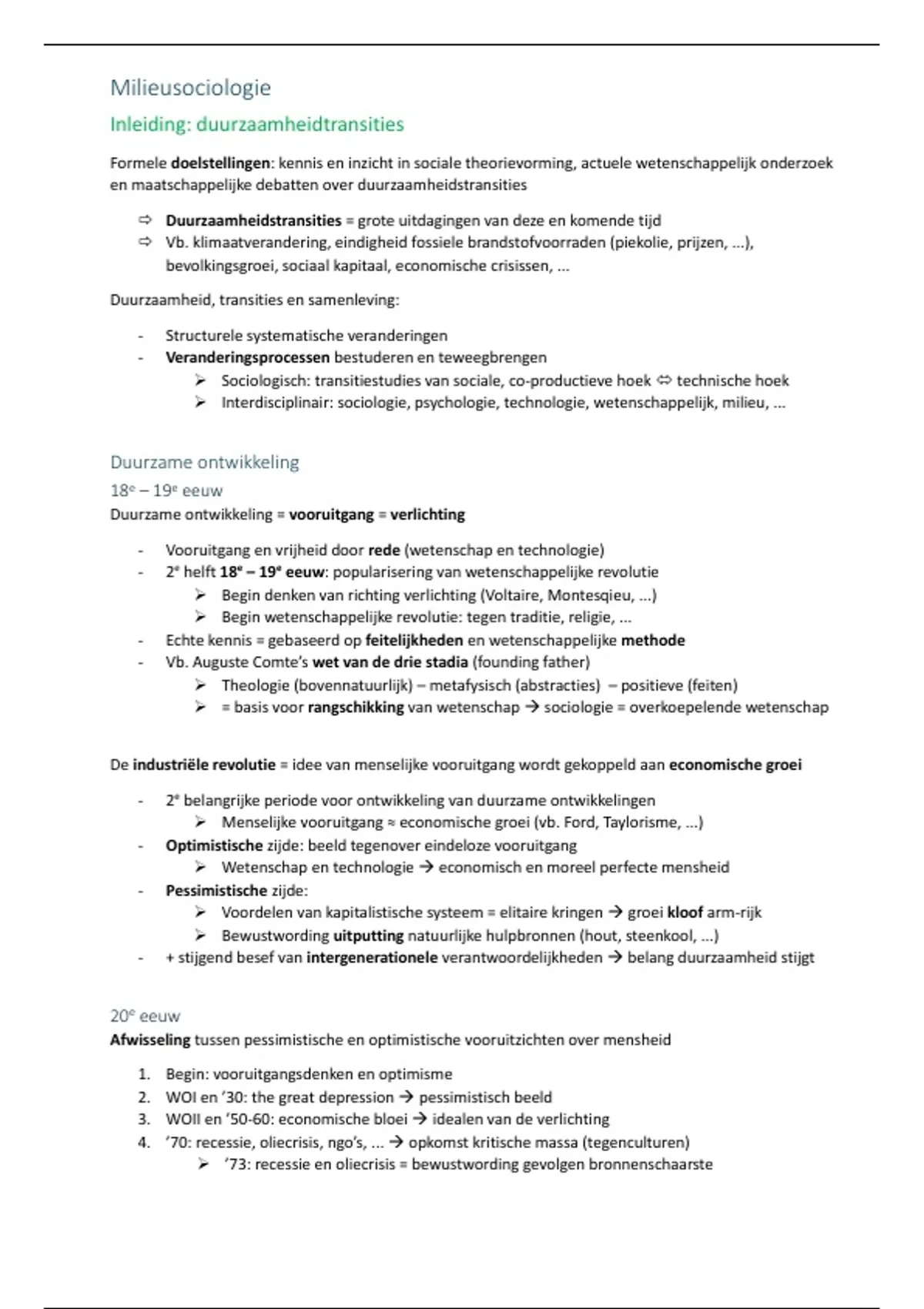 Samenvatting van milieusociologie, op basis van de slides en aanwezigheid in de lessen. Geschreven in het Nederlands. Vak gegeven in de 3e bachelor in de richting Sociologie te UAntwerpen