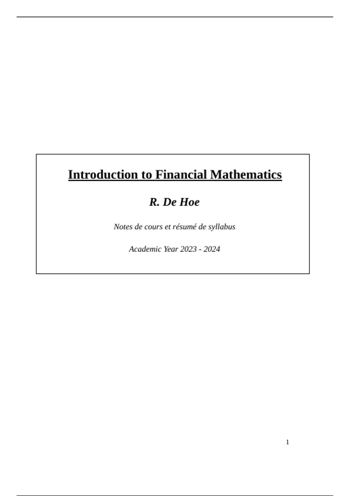 Introduction to Financial Mathematics