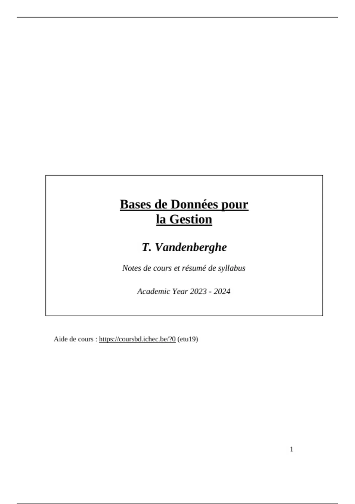 Aide de cours : https://coursbd.ichec.be/?0 (etu19)