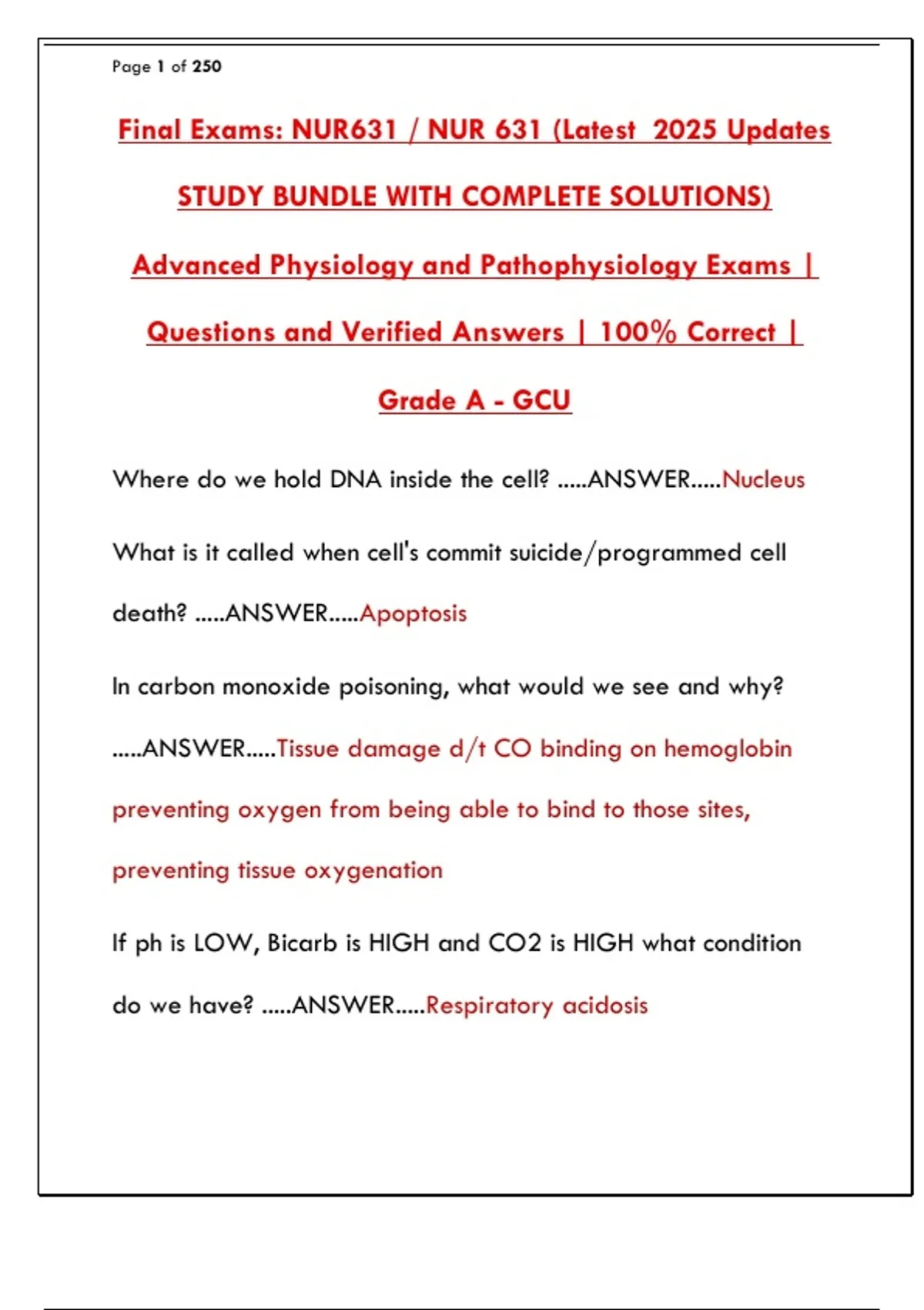 Final Exams: NUR631 / NUR 631 (Latest 2025 Updates