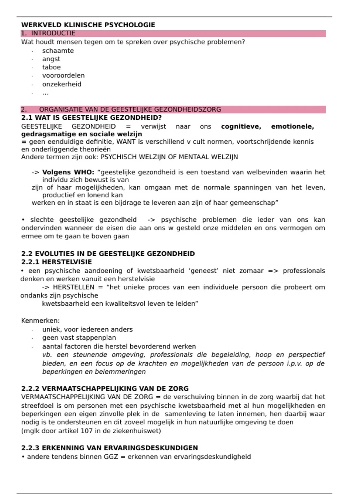 WERKVELD KLINISCHE PSYCHOLOGIE