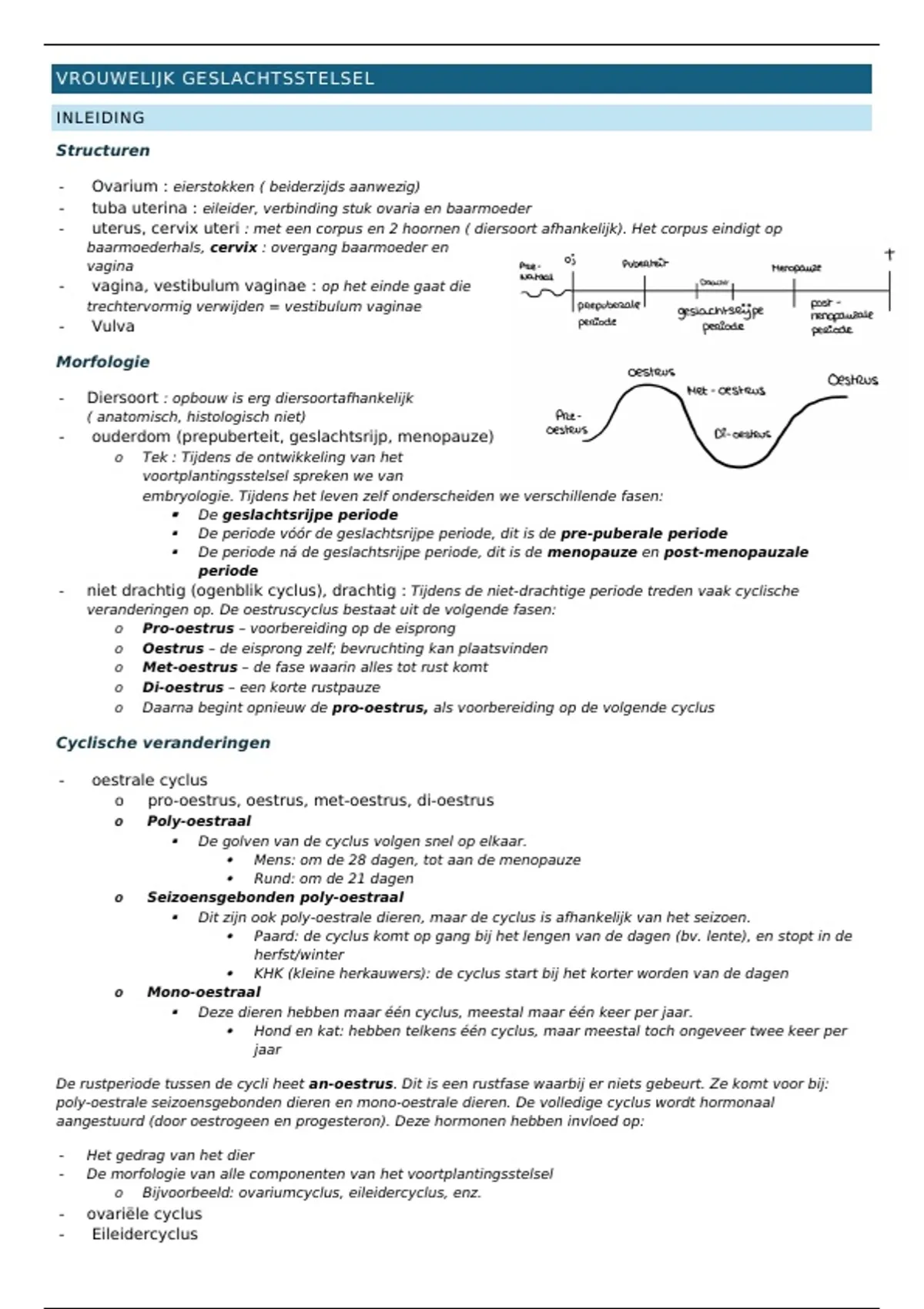Samenvatting bijzondere weefselleer - vrouwelijk geslachtsapparaat