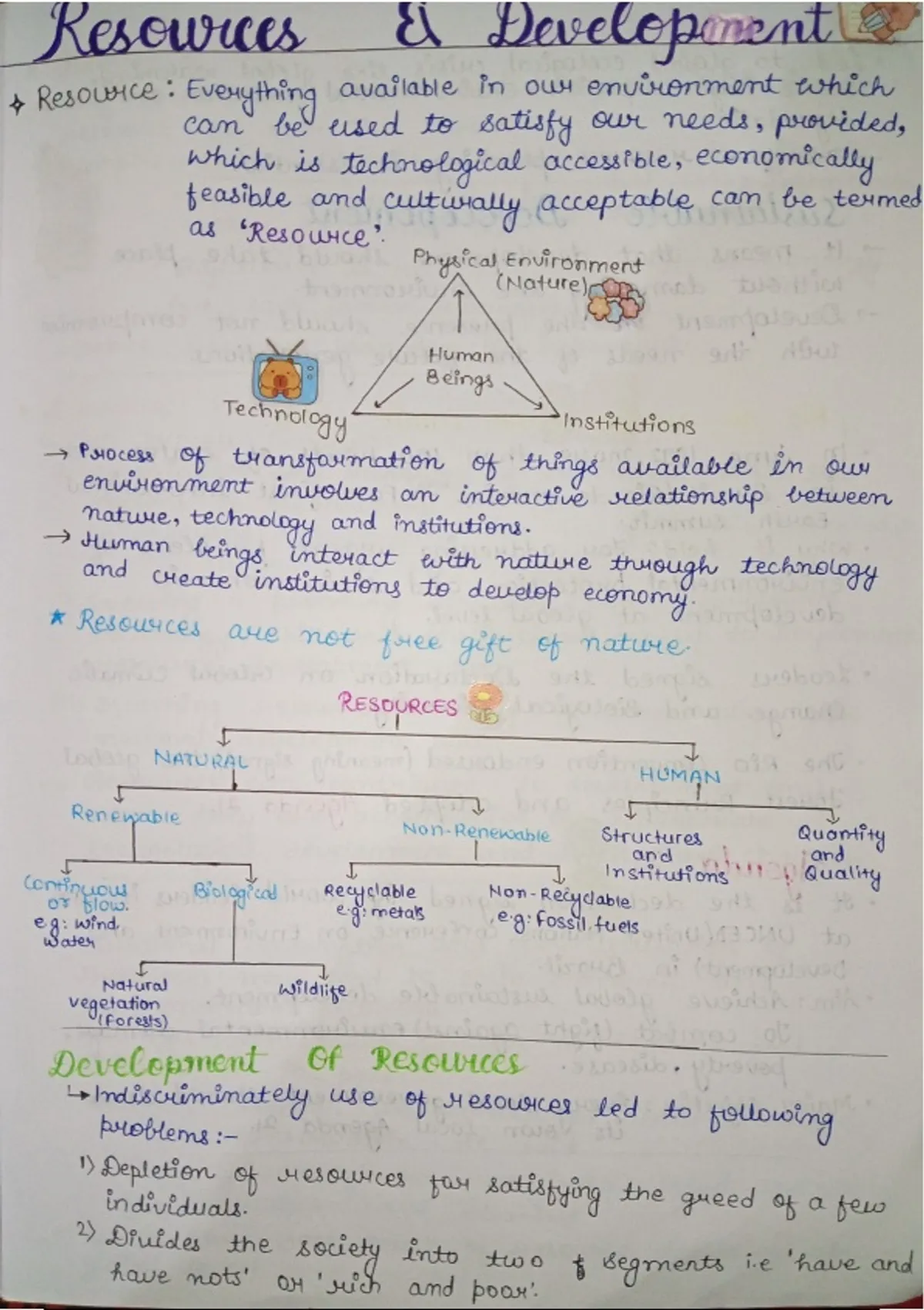 This notes will give you detailed description of chapter resource and Development. After reading this you won't even need to touch ncert. This notes contains minute details even. Also map works accordingly to the syllabus.