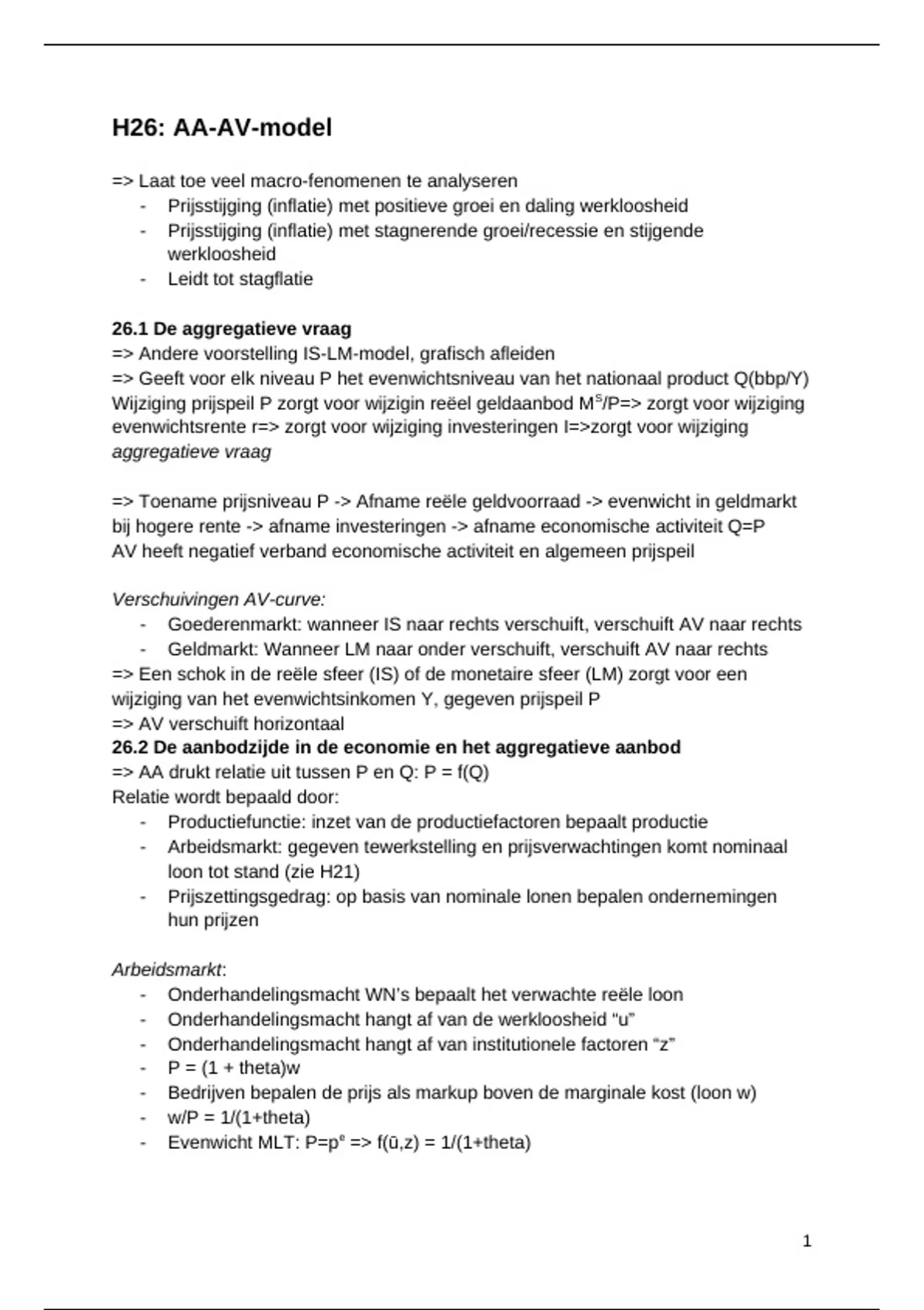 - Productiviteit (A) beïnvloedt de onderhandelingen tussen WG en WN, hoe