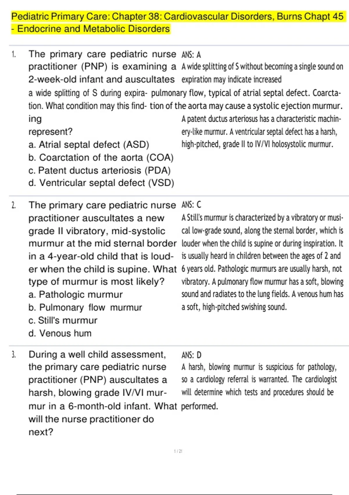 Pediatric Primary Care: Chapter 38: Cardiovascular Disorders, Burns Chapt 45 - Endocrine