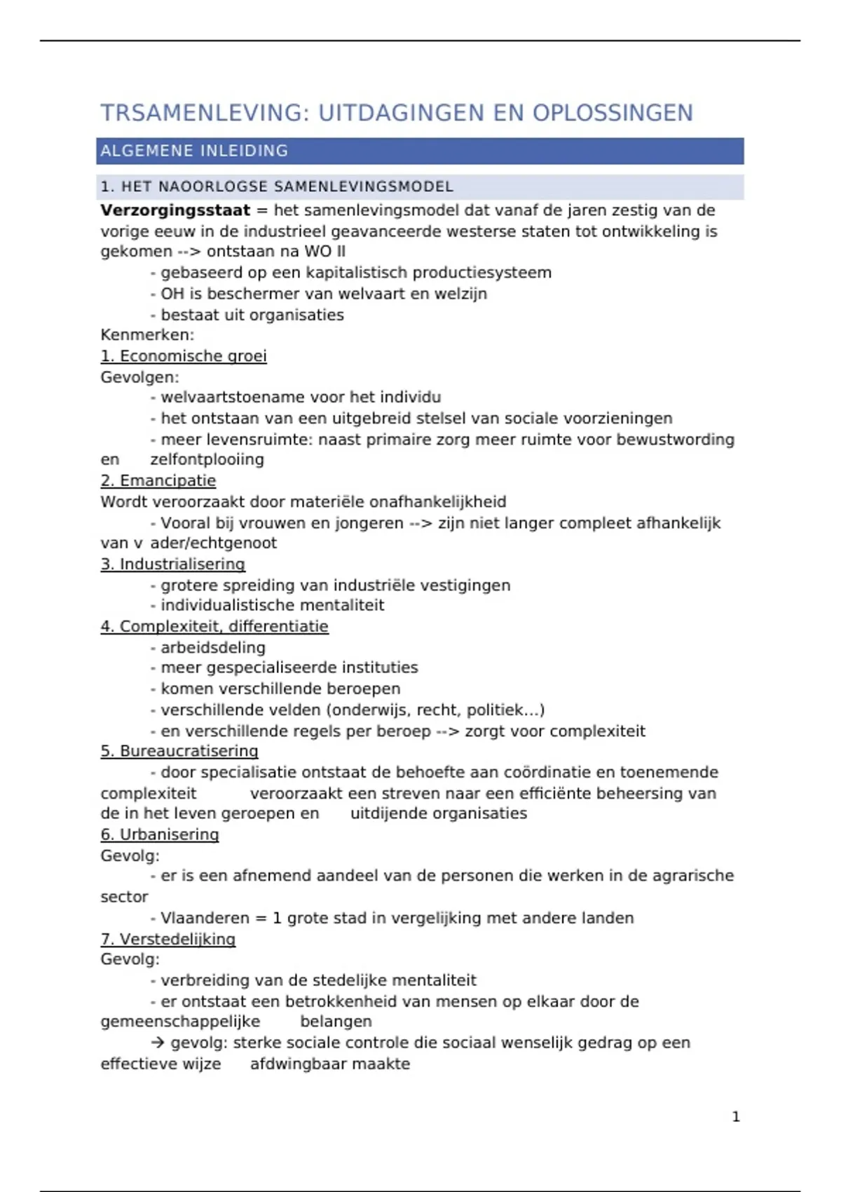 - Samenvatting samenleving lessen + boek - Prof: Geert van Hootegem - Geslaagd