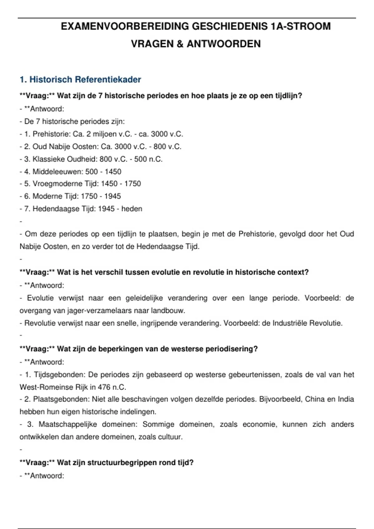 EXAMENVOORBEREIDING GESCHIEDENIS 1A-STROOM