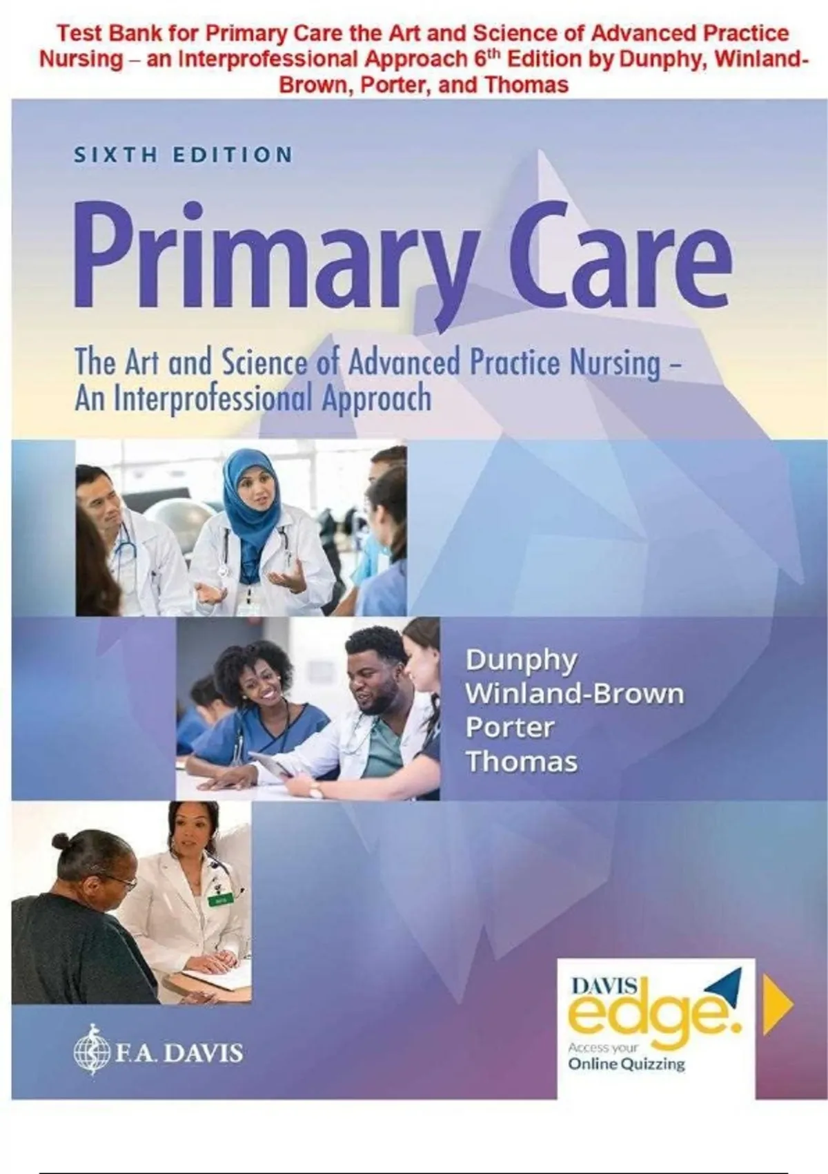 Primary Care: The Art and Science of Advanced Practice Nursing – An Interprofessional Approach, 6th Edition – Dunphy, Winland-Brown, Porter & Thomas – Complete Test Bank